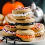 For Halloween parties, I’ve used cookie stands to arrange these beauties in a pumpkin shape, alternating frosting colors for a festive pop. Wrapping each cookie individually in cellophane with a cute ribbon makes for adorable gift giving. And if you’re into food styling, I enjoy topping the sandwiches with tiny fall leaves made of fondant or edible glitter for a little magic.