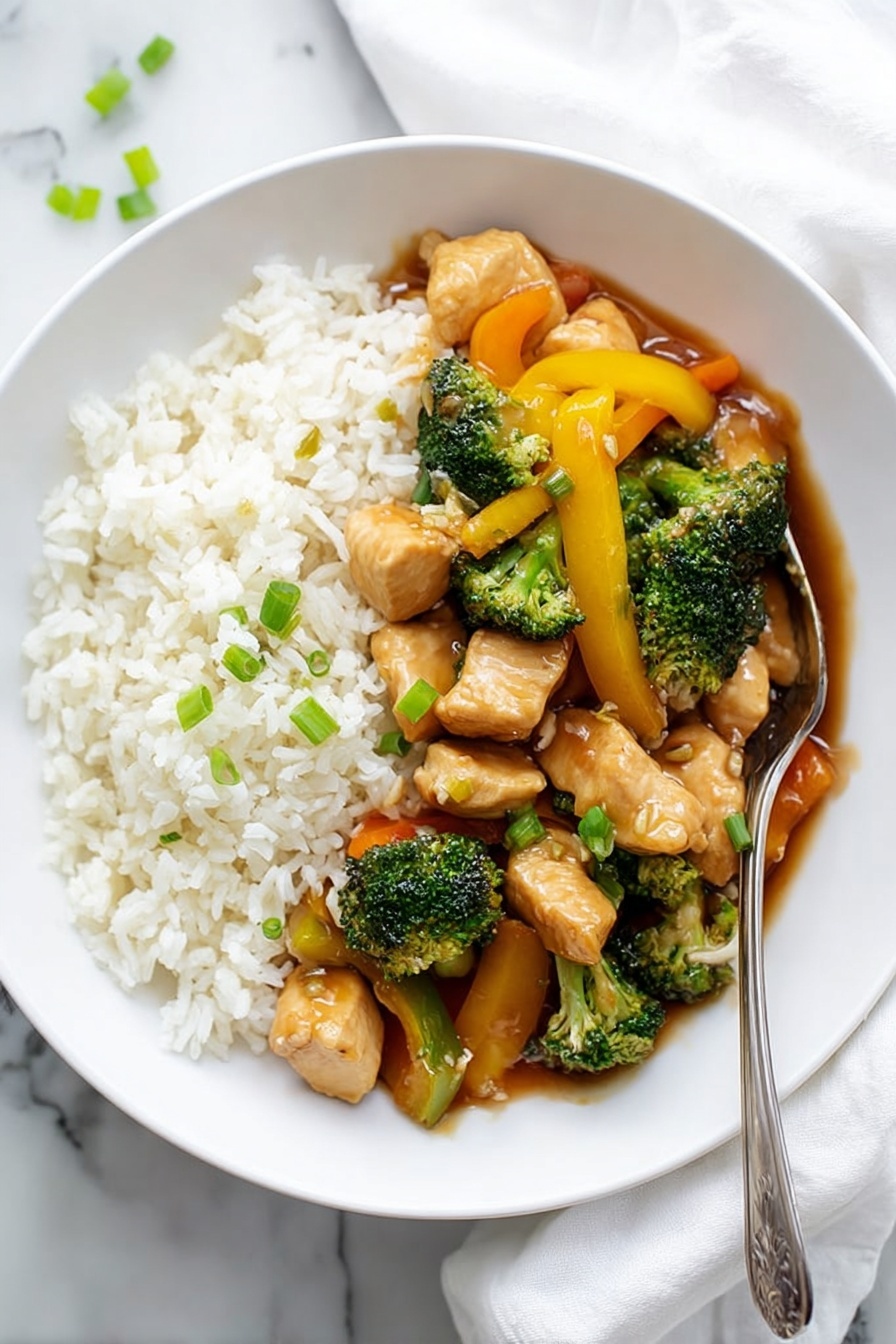 A flavorful and colorful Chicken and Broccoli Stir Fry featuring tender chicken, crisp broccoli, and vibrant bell peppers cooked in a savory-sweet sauce. This quick and easy stir fry is perfect for a wholesome weeknight dinner served over steamed rice.