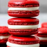 Delight in these elegant Red Velvet Macarons featuring delicate almond meringue shells infused with cocoa and vibrant red coloring, paired with a smooth and creamy vanilla-flavored cream cheese frosting. Perfectly baked to achieve a crisp exterior and chewy interior, these macarons are ideal for special occasions or sophisticated snacking.