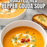 A rich and creamy Roasted Red Pepper Gouda Soup combining roasted red peppers, smoked gouda cheese, and a blend of aromatic vegetables for a comforting and flavorful meal.