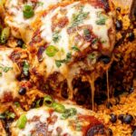 Now for the fun part: stir in your salsa, black beans, green chiles, and fresh cilantro into the cauliflower rice, mixing everything until warmed through—just a few minutes will do. Nestle your cooked chicken back into the skillet on top of the fragrant rice mixture, then spoon extra salsa over each breast before sprinkling on the shredded cheese. Pop a lid on the skillet for a few minutes on low heat—this step melts the cheese perfectly without drying out the chicken, and that melted cheese really makes this dish sing.