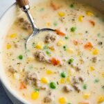 - Heat Beef and Vegetables: Add the cooked ground beef and frozen mixed vegetables to the soup and allow to heat through for about 5 minutes.