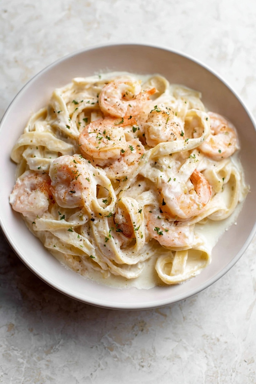This Easy Shrimp Alfredo recipe features tender shrimp cooked in a creamy, cheesy sauce served over perfectly al dente fettuccine. Combining a rich blend of cream cheese, heavy cream, and parmesan, it delivers a luscious homemade Italian-inspired dish that’s quick and simple to prepare, perfect for a satisfying weeknight dinner.