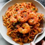 I personally don’t freeze this one with shrimp—it tends to lose texture—but you can freeze the sauce separately. Just store it in a freezer-safe container for up to 3 months, then thaw and toss with freshly cooked pasta and shrimp when ready.