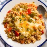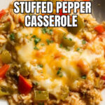 This Stuffed Pepper Casserole is a flavorful one-pan meal combining ground Italian sausage, bell peppers, onions, and rice simmered in a savory broth with salsa, topped with melted mozzarella cheese. It’s an easy and comforting dish that captures the essence of stuffed peppers without the hassle of stuffing individual peppers.