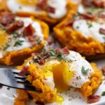 - Bake to finish: Return the filled sweet potatoes to the oven and bake for 20 minutes or until the eggs are set and the filling is hot throughout.