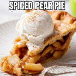 This Chai Spice Vegan Pear Pie features a flaky vegan crust and a warm, spiced pear filling infused with fragrant chai spices. Perfectly baked to golden perfection, this dessert is a cozy treat to enjoy with a scoop of vegan vanilla ice cream.