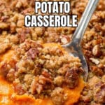 Yes! You can prepare the sweet potato filling up to a day in advance, spread it in your casserole dish, cover tightly, and refrigerate. When you’re ready to bake, add the freshly mixed pecan topping and bake as directed. This tip has saved me so much stress on busy days.