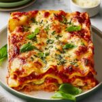 I always top my lasagna with a handful of freshly torn basil leaves or some chopped parsley for a pop of color and fresh herbal brightness. It’s such a simple touch that brings the whole dish together visually and flavor-wise.