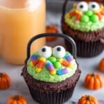 Witch’s Cauldron Cupcakes are spooky, fun treats perfect for Halloween or themed parties. These rich chocolate cupcakes are filled with a creamy orange pastry filling and topped with both decadent chocolate and green vanilla frostings, decorated with candy eyes, licorice, gummy worms, and sprinkles to create a magical cauldron effect.